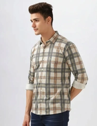 Step up your fashion game with the BULLMER Men's Checked Regular Shirt, exclusively available at LOOMLUX. This multicolor checked shirt is the perfect combination of style and comfort, designed for the modern man who values versatility in his wardrobe. Whether you're heading to a casual outing or a semi-formal event, this shirt ensures you look sharp and confident.
