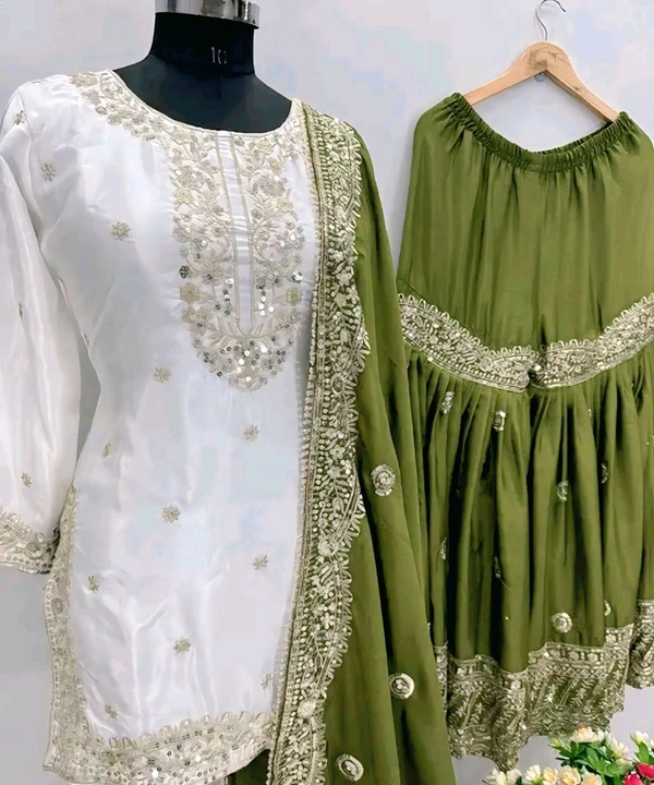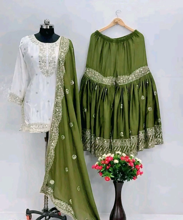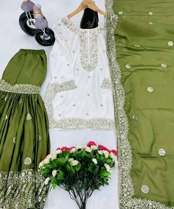 Name: PARTY WEAR HEAVY CHINON GHARARA SUIT SET WITH EMBROIDERY WORK & DUPATTA