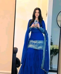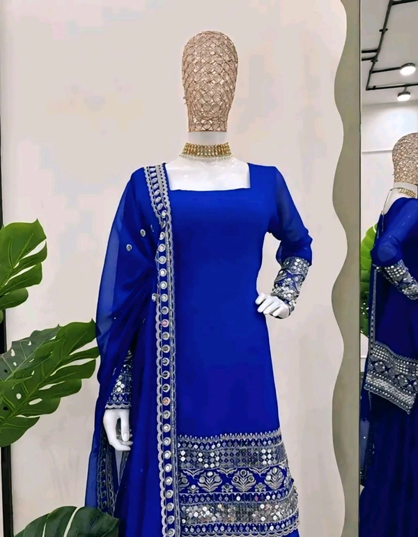 Beautiful Georgette blend Kurta, Sharara & Dupatta Set. The fabric material is soft and smooth we have a combination of fine quality fabric, latest design, and trending fast, The fabric is nice and it fits well,this designer Kurta, Sharara & Dupatta Set can be wear at all occasion like, party, festivals, wedding as well as in functions.