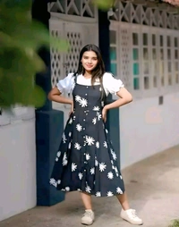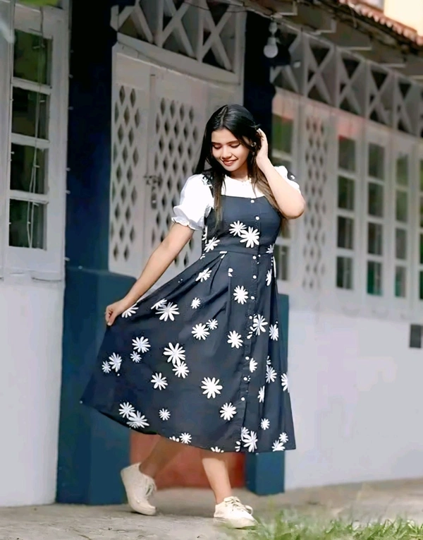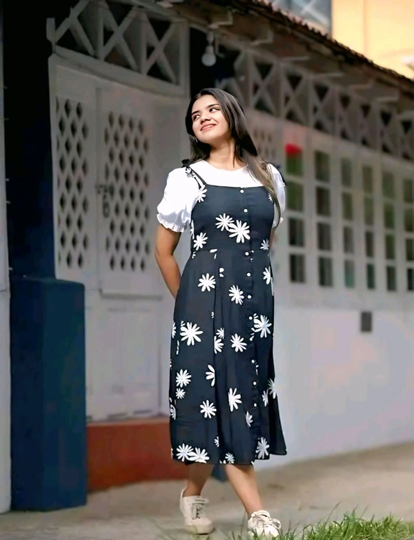 Introducing our vibrant printed rayon dungaree dress, the perfect blend of comfort and style. Made from high-quality, breathable rayon fabric, this dress offers a soft, lightweight feel ideal for all-day wear. The eye-catching print adds a playful touch, making it a standout piece for any casual outing. Featuring adjustable straps and a relaxed fit, this dungaree dress ensures a flattering silhouette for all body types. Pair it with your favorite sneakers or sandals for an effortlessly chic look