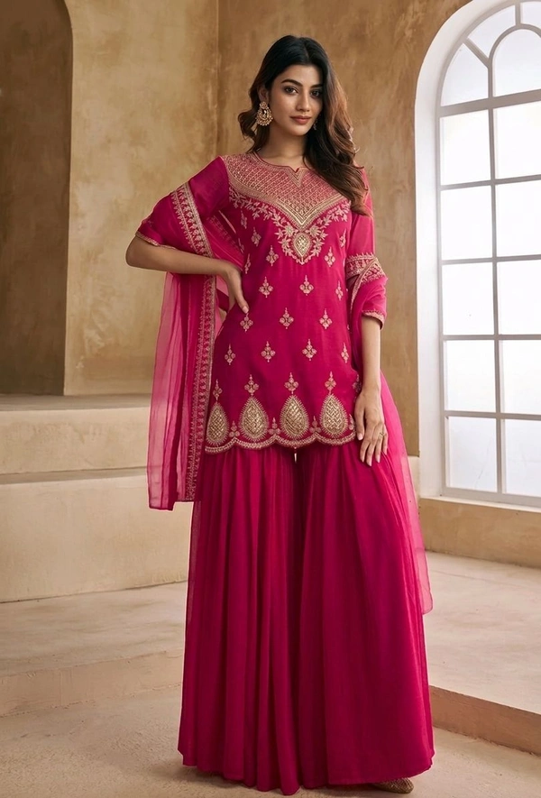 Sequins Embroidered Kurta And Sharara With Dupatta Set