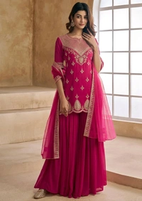 This exquisite set is more than just an outfit; it's a statement of sophistication and grace. Whether you're attending a family gathering or a lavish event, the Sequins Embroidered Kurta And Sharara With Dupatta Set ensures you stand out with confidence and poise.