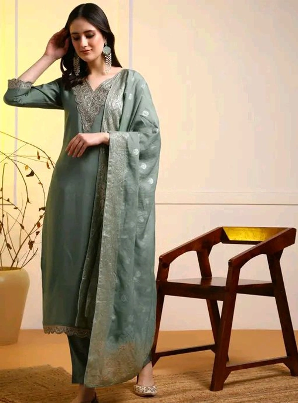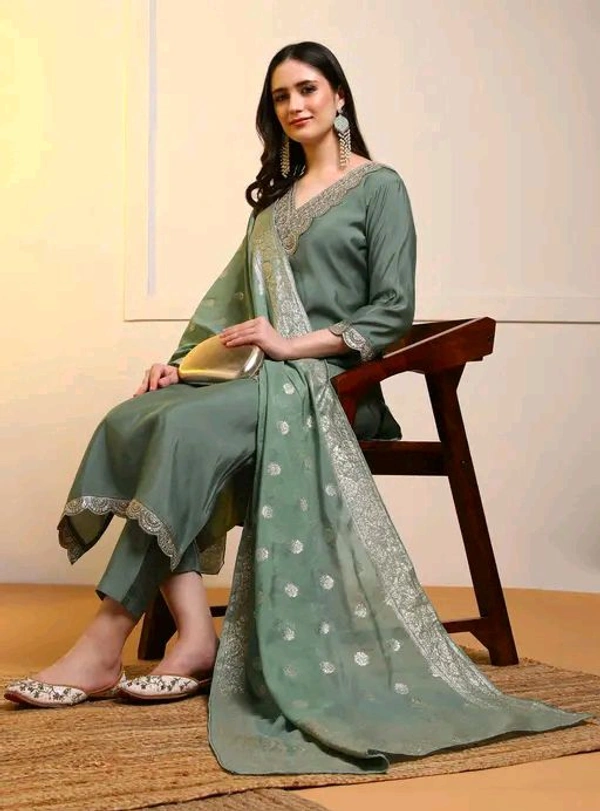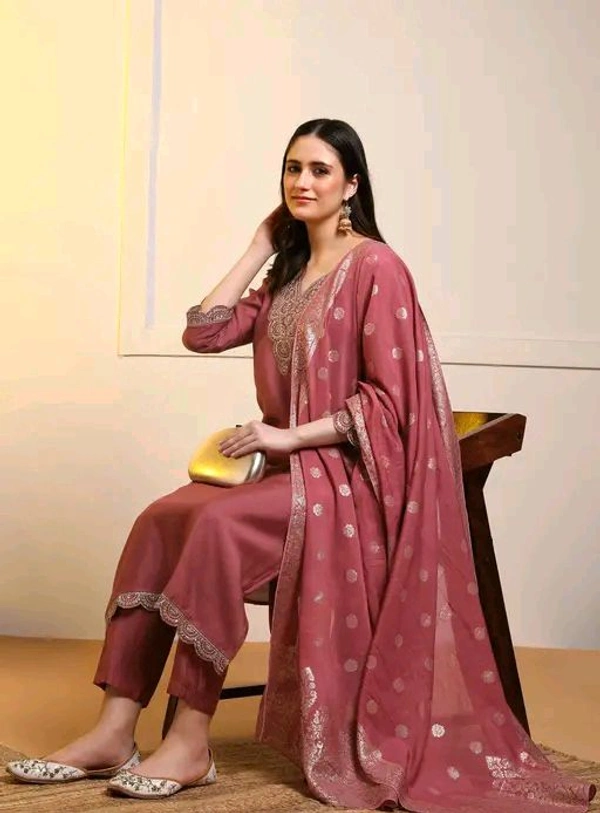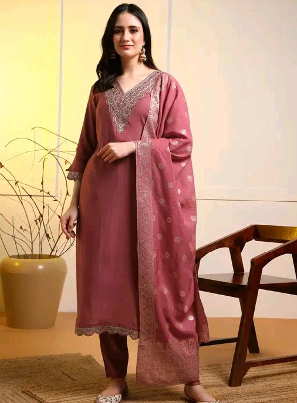 Elevate Your Style with the Women Straight Kurta With Jacquard Dupatta Set