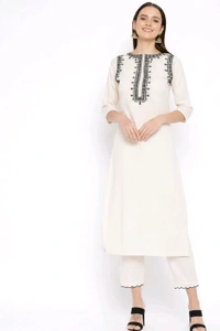 Elegant and Timeless: Women's Off-White Embroidered Kurta and Pant Set