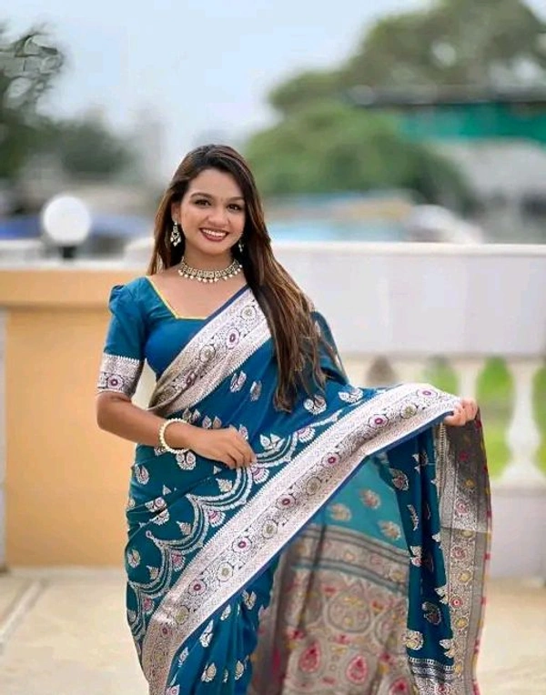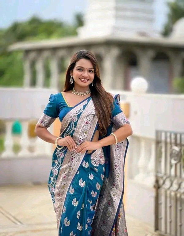 - Pattern: Intricate Zari Woven design for a regal and sophisticated look.